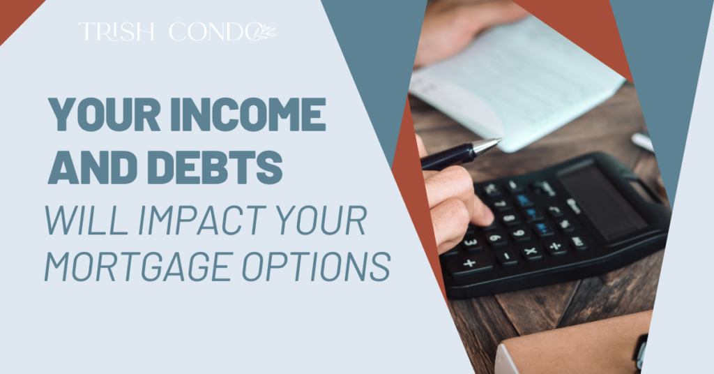 The amount of money you make, as well as how much you owe, will also influence your mortgage options.